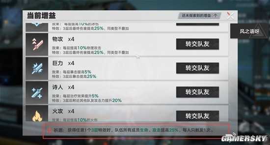 我们获得buff可以赠送队友与向队友索求自己所需,当没人要的buff也要让没有激活祈愿buff的玩家堆满三层,总共四个玩家可以叠加四次哦。