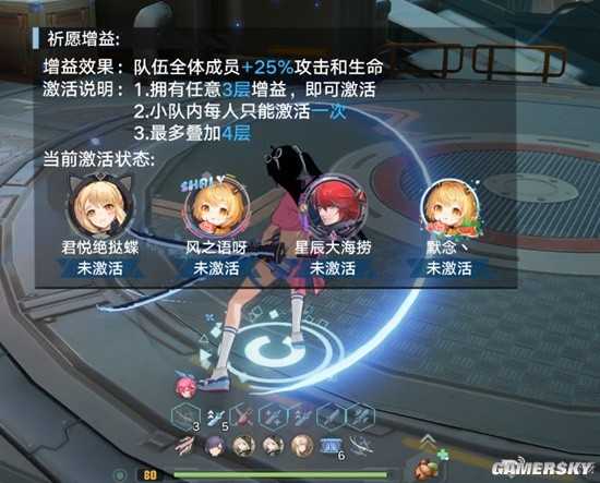 3)祈愿:获得任意1个3层特效时,队伍所有成员生命、攻击提高25%,每人只触发1次。
