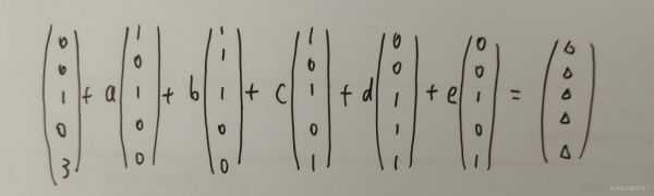 现在,我们第一个转6次,第二个转4次,第三个转2次,第四个转4次,第五个转3次就可以了。由于矩阵满足加法交换律,转动没有顺序要求。