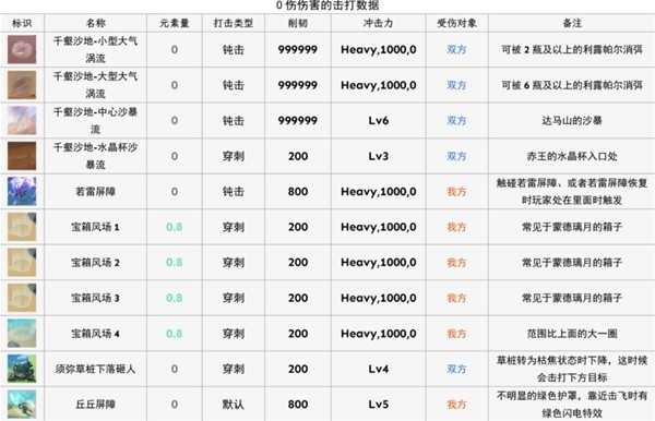 以及有部分的环境伤害是有明显的硬直效果但没有伤害,这边我也整理了一些,方便大家查阅: