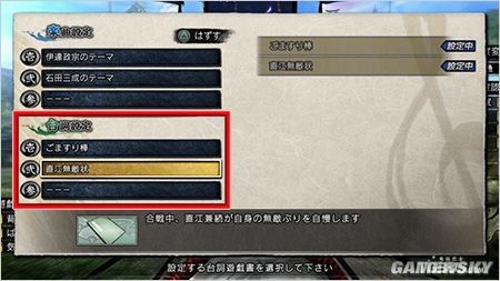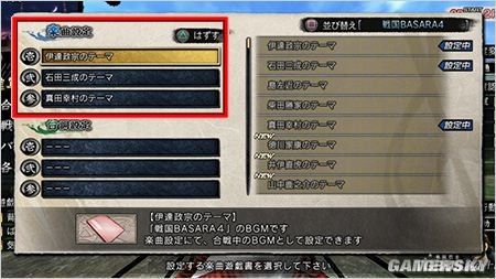 游戏书中还有包括“乐曲游戏书”和“台词游戏书”等要素,乐曲游戏书指的是可以选择游戏中玩家自己喜欢的音乐设定为此次合战BGM的要素,一次可以选择的乐曲为3首,在合战中按照次序播放。台词游戏书则指的是能够改变合战中士兵们的台词的特殊游戏,系列中经常出现的台词可以变成新的台词。无论哪种游戏书都可以在BASARA屋中购入。