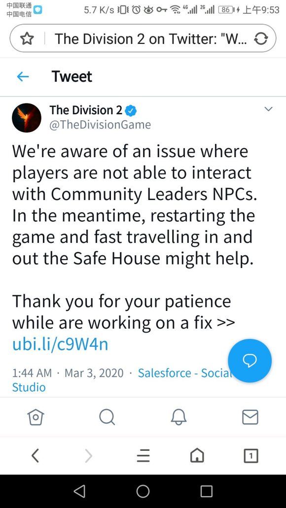 在3月3日下午四点半的服务器维护中将会解决这个BUG,各位特工不妨先升级,再在下午更新完毕后在尝试与社区领袖对话。