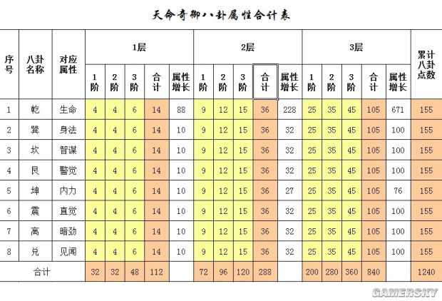 《天命奇御》八卦属性点影响人物属性、功法与是否能接任务,而游戏中并没有详细的信息,下面小编带来“magic_songyang”分享的《天命奇御》八卦属性点作用及各阶段所需点数,一起来看看吧。