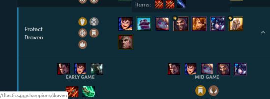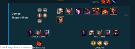 成型思路:拿换形就完事了,龙女的装备可以先给蔚拿着,中期有2海克斯3换形保证血量,7人口就必须要后排有龙王或者德莱文补一点输出,当然有6换形的话前三一般稳了,考虑给乌鸦装备去C了。这套因为大哥太多,德莱文,龙王,乌鸦,纳尔谁先2星给谁装备做副C。