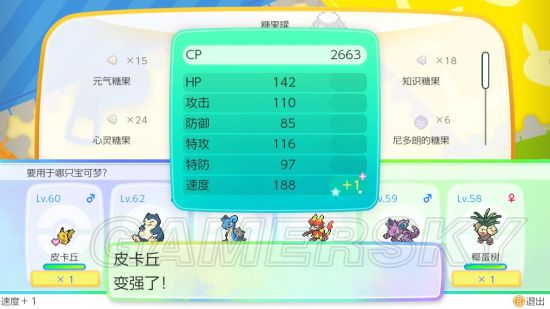 可以选择宝可梦一项强化到满,可以一直用,最多可以用六个。