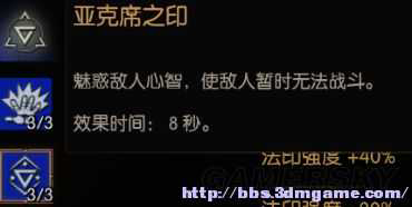 2点<昆恩之印>。接着学习2点<亚克席之印>然后学习2<盔甲融化>这时候技能点消耗足够6点。就可以激活下一阶段技能学习。第一个学习<玩偶大师>然后尽情的激情去吧!
