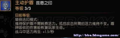 很强力的恢复技能。学习到3级。按住Q。维持一个回血护盾。最主要的是。维持护盾不需要消耗能量。原地等待怪物攻击你。回血无尴尬~!