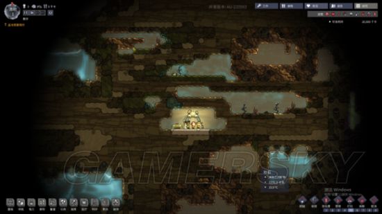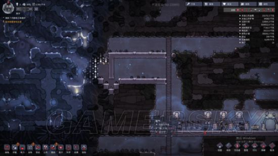 在装饰建造完毕,研究完第一个食物种植技术后即可立即开发冰原。开发冰原的位置主要取决于地图,但最好的地图是冰原在基地传送门的左下侧,因为食物储存区最好建在传送门的下一层,提高收获、烹饪、储存的效率,本档演示如何开发左上侧冰原,后文会有演示如何开发左下侧冰原。