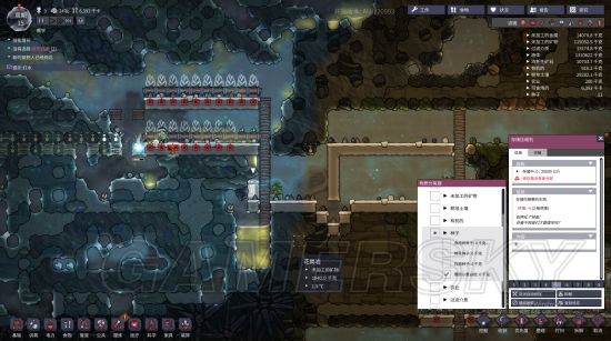 红色高温区(氯气、氢气、胡椒)尽量远离基地,但我疏忽了一点,高温区可能存在大量的藻类,对于不使用电解水来确保基地氧气,很重要,所以并不是高温区一点可以利用的价值没有。