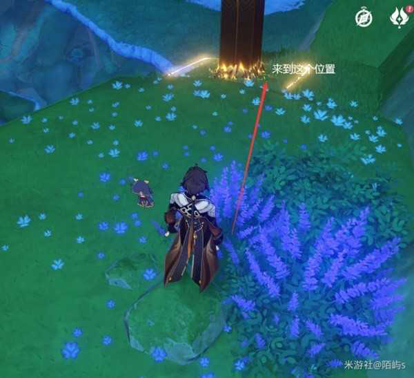 来到传送点后,朝着地图东南方向看。朝着我插柱子的那里走,走到了就停在那。