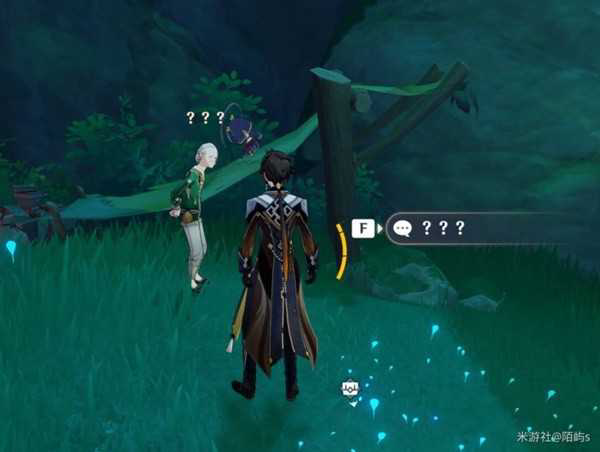 对话结束后,他会让你去一个山洞里面。跟随任务提示来到这里。然后跳下去一直朝里面走,单行道。走到头就能遇到他了,触发任务。