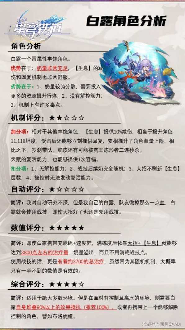 在《崩坏星穹铁道》中,白露是其中一个角色,那么《崩坏星穹铁道》白露怎么样?《崩坏星穹铁道》白露专武什么时候用?看下玩家“新月SAMA ”带来的《崩坏星穹铁道》白露深度解析及专武介绍吧。