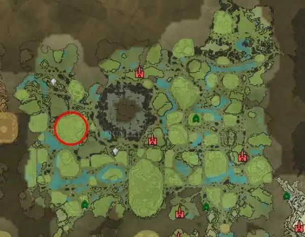 在邓利农场北部的诅咒教堂,具体位置如下方图片红圈位置所示。天灾石会在宝箱中刷新,也有概率从小怪身上掉落。