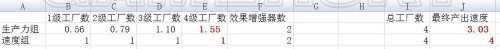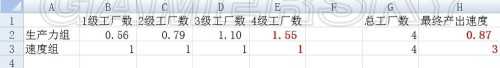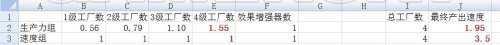 生产力组呢?还是上面的0.56吗?这里就有点问题了,首先,如果两个工厂速度同时下降60%,上下游还是可以衔接的。但是现在一级工厂速度下降的同时,产出增加了40%,这多出的40%没法被二级工厂消耗掉,因为二级工厂速度下降了60%!二级工厂消耗原料的速度是0.4,而一级工厂产出速度是0.56!