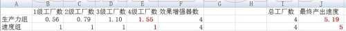 那么究竟要多少级生产线才能让生产力组的速度超过速度组呢?经过计算得出,只有在生产力组的末端工厂数为5.36个时,才能在速度上超过速度模块组