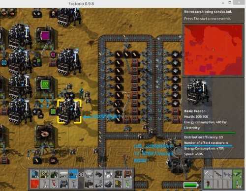 图中这个beacon只覆盖了2个工厂,但是显示影响了4个,如果你点到工厂上,会发现,实际这两个工厂各收到了2个影响,效果增强器倍增了