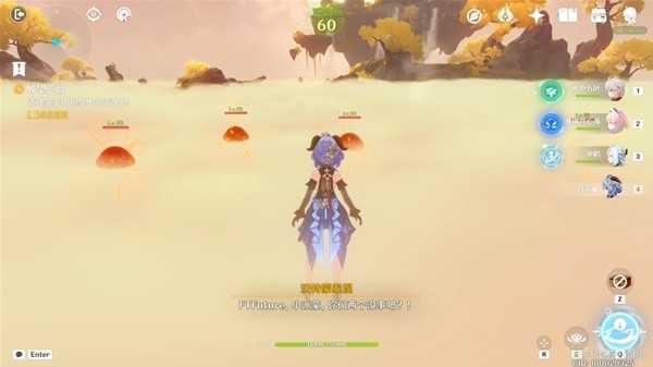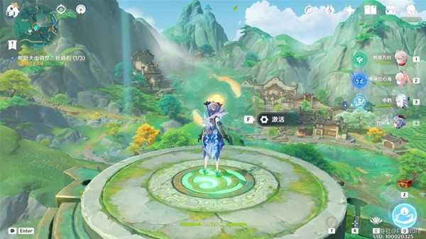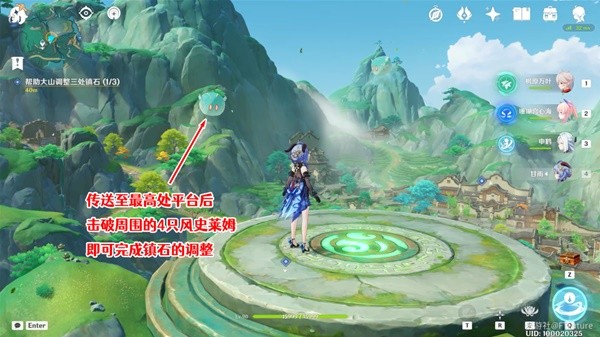 站到平台上以后,周围会不断出现风史莱姆,使用弓箭角色将这些风史莱姆全部击破后,平台上就会出现一个「金鲤浮跃」传送门,我们激活一下进行传送即可。