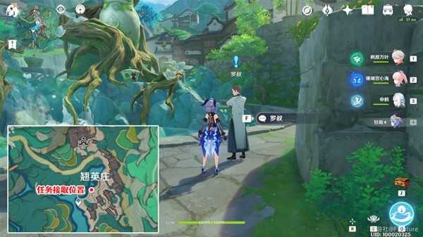 完成世界任务「沉玉祝珑」系列的第一部分「仙山有茗,名以翘英」后,到翘英庄下图所示位置与罗叔对话即可接取任务。