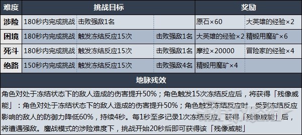 第七天的地脉残效提供冻结增益,因此推荐以冻结为核心的阵容。强敌每组2名,一共会出现4名,可以每次冻结2名然后一起输出,以节省时间。