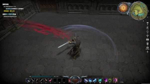 尽管曾经可能十分强大,但作为一个刚刚苏醒的吸血鬼,玩家所拥有的能力尚十分有限,身上也是干干净净没什么装备。在向玩家介绍基础玩法系统方面,游戏教学关的节奏掌握的很不错。从一开始的的按鼠标朝面向方向攻击/施法,到击败骷髅兵收集他们的骨头制作骨质护甲,再到制造对采集特定资源有加成的斧头和锤子。完成上一阶段的任务后获得的奖励配方基本就是下一个任务中所需要使用的。每一个阶段的目标都很简洁易懂,任务流程间的衔接非常流畅舒适。其中还会穿插的介绍一些游戏的特色系统比如吸血鬼在遭到阳光长时间照射后会受到严重伤害以及吸血等一系列操作。而在完成了新手内容的相关教学后,这个任务系统也会持续下去,并自然的过渡到游戏的进阶玩法上。比如基地的建造。
