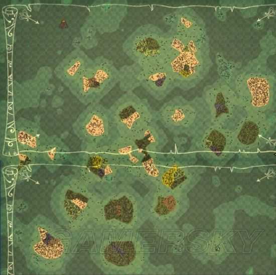 由沼泽,树林组成的岛屿。地图内会存在由沼泽和树林各占一半的中等大小的岛屿和大面积树林,岛屿中心为小面积沼泽的大型岛屿。其中后者岛屿上会存在大量的猴群和蜘蛛