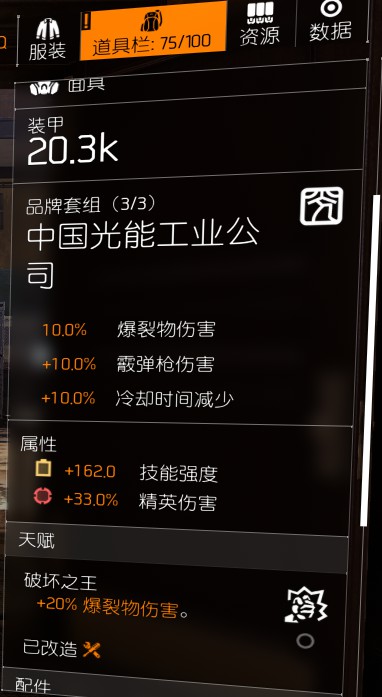 增伤手段一共就上面这几个,每损失一个毁灭词条,或者一个技能插件,装备上降低的伤害都是不可弥补的,口罩的精英伤更是不可替代。