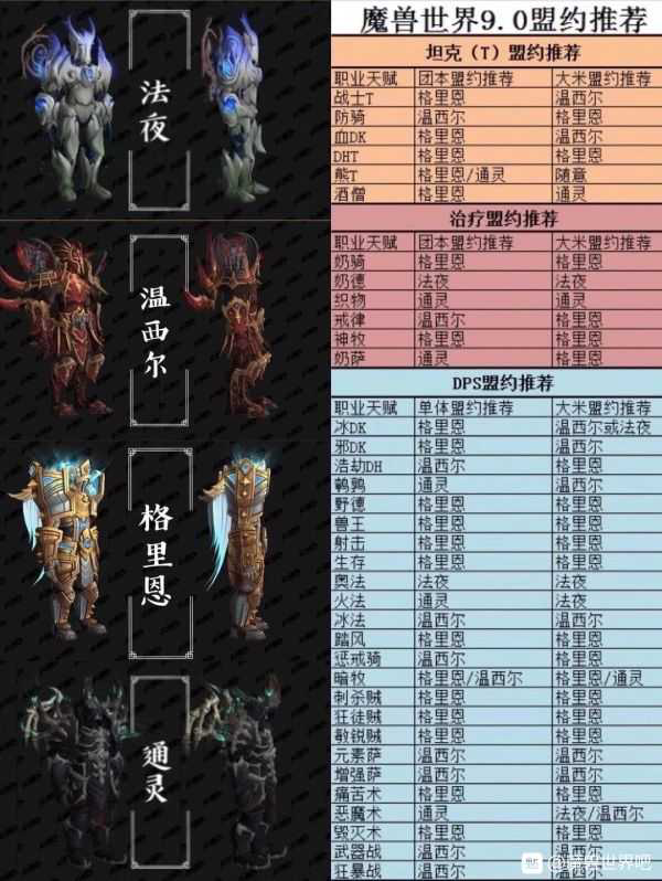 《魔兽世界》9.0中需要玩家在四个盟约中选择一个加入,同时可以获得相应盟约的效果加成,那么我们该怎么选择盟约呢?现在为大家带来“你搁这养生呢”分享的《魔兽世界》9.0各职业盟约推荐,一起来看看吧。