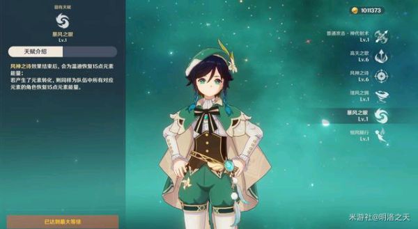 这个技能等于是将温迪的大招耗能从60点降低到45点,同时也为队友提供了一定的能量回流。由于温迪的大招冷却时间是15秒,而点按E的冷却时间是6秒,因此实际游戏中,应该保证温迪(无队友时)点按3次E技能可以稳定充满大招(45点能量),即:大约167%元素充能。