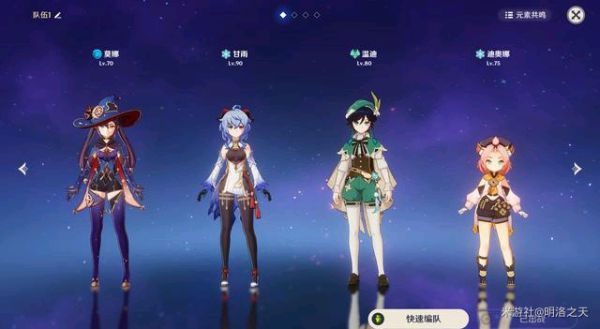 温迪作为泛用性辅助角色,并没有阵容选择权,也没有固定的阵容,一般组合为“温迪+甘雨+莫娜”、“温迪+琴+其他”,但由于现版本环境变化,已经较少能够见到这些阵容了