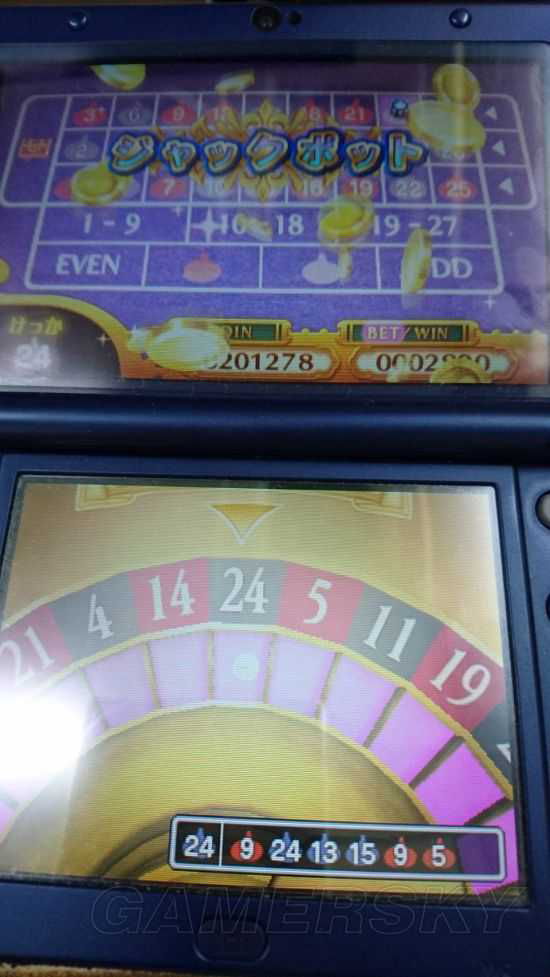 2、每个数字只要押一个筹码即可,像我是玩100那台(3DS没有200元的台),每注只有1个筹码。中了JACKPOT之后依然是100万枚筹码。