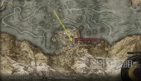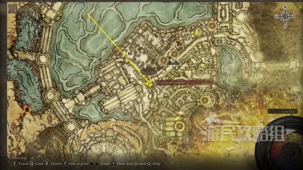 位于王城罗德尔。首先前往下图所示的赐福“王城西边城墙”。