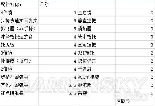 下面说说游戏中的配件选择的问题,下面是我的个人评分,大家可以参考。