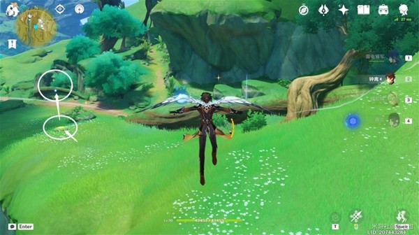 往地图的东南方向飞,利用四叶印,获取第三处能量