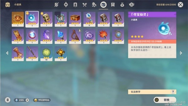 在背包中装备「寻宝仙灵」,召唤「寻宝仙灵」