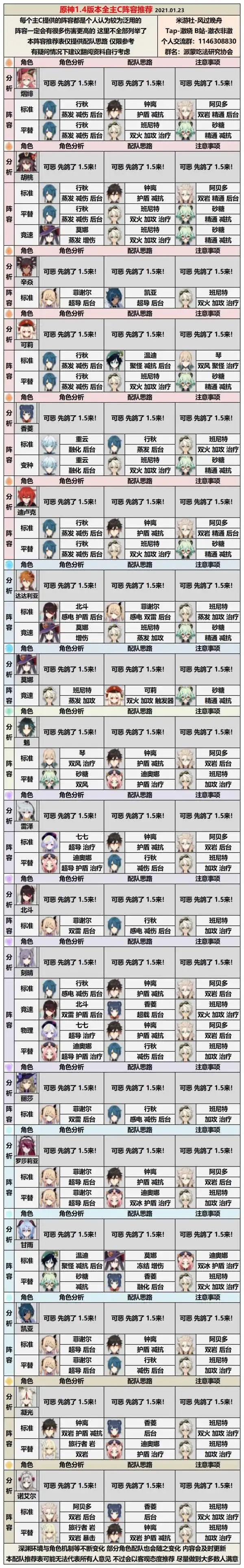《原神》中各个角色的技能机制不同,如果能够合理的搭配队伍可以更好地发挥出角色的强度,还不知道怎么搭配队伍的玩家请看下面“风过晚舟”带来的《原神》1.4版全角色队伍搭配推荐,希望能够帮助大家。