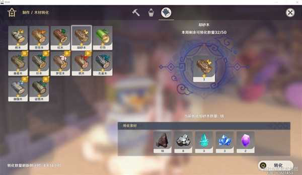 木材转化功能使用矿石转化成需要的木材,但是每周只有转换50个木材。