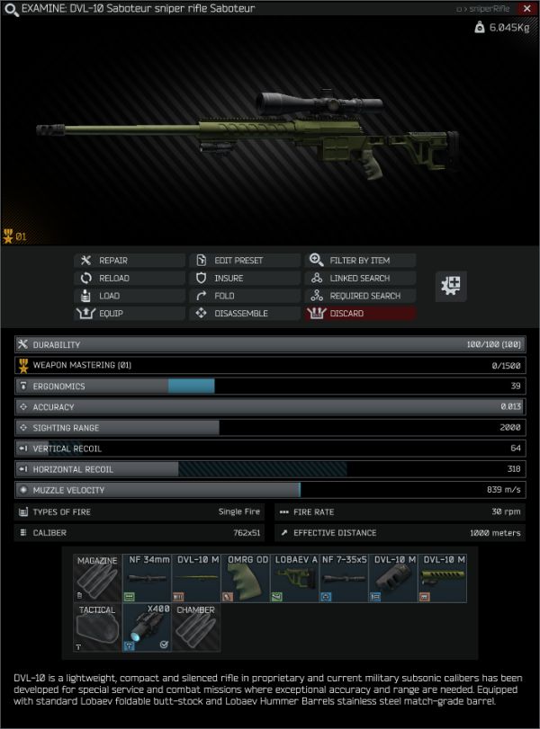 60发弹匣//要求人机高于等于70//后座力小于等于350//消音//重量低于3.8kg//视距大于等于800