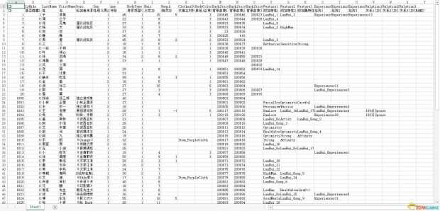 第2行是表头,所有对应列的属性已写明。其中C列D列中已有的是官方设定好的“轮回者”,你可以直接输入姓名选择这些官方精心设计的角色来直接进行游戏,但咱们是自建就接着往下说。