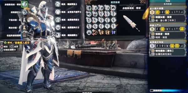 1.重要输出技能全满的情况下兼顾体三精灵5,龙耐性很高适合讨伐古龙