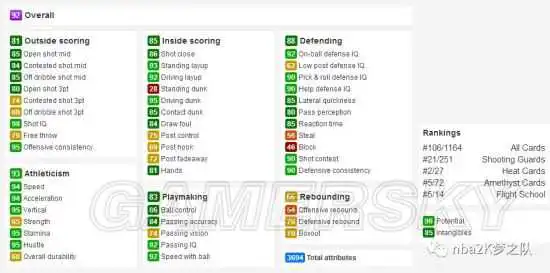 防守方面,虽然88的均值看起来不错,但他的抢断却只给到了56点,这就有些让人难以接受了,而且鉴于韦德的身高(1米93)和偏瘦的建模,这也将让他更难在防守端发挥作用。