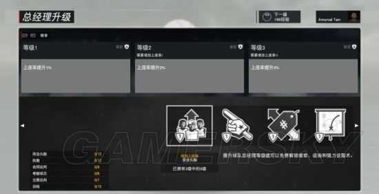 总经理升级:完成指定目标可以解锁经理等级以及免费解锁徽章、设施和强力说服术。