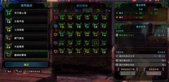 如6紫色蔬菜搭配可吃出属性耐性大,全属性抗性提升15