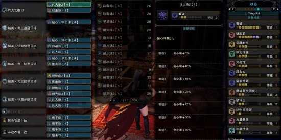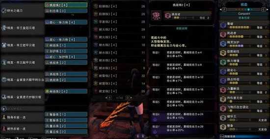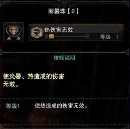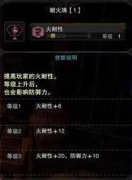 火耐性:简单粗暴降低受到的各种喷火伤害,如果火耐性在20以上的话可以免疫着火状态,看需求出;