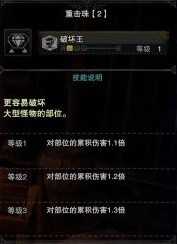 破坏王:对黑龙头部造成部位破坏至关重要,因此破坏王也是可以考虑的技能。