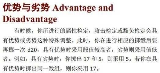 还记得前面我们说的优势扩大吗?为什么说核心是优势扩大呢?我们先看一下DND5E的玩家规则书里面是怎么说的: