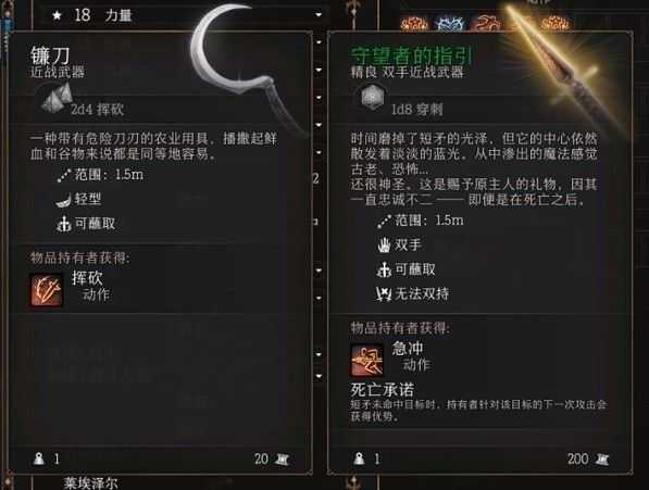 然后再说一个基础的,武器上的1D8和2D4哪个厉害。直接从神界原罪2过来的玩家可能不太理解。实际上,厉害的是2D4,前面是说1个8面骰子,最低伤害是1最高伤害是8
