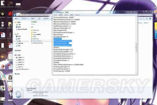 1.打开我的文档,进入my game文件夹,进入Skyrim文件夹,找到skyrimprefs文件,用记事本打开,修改下面这一段.。
