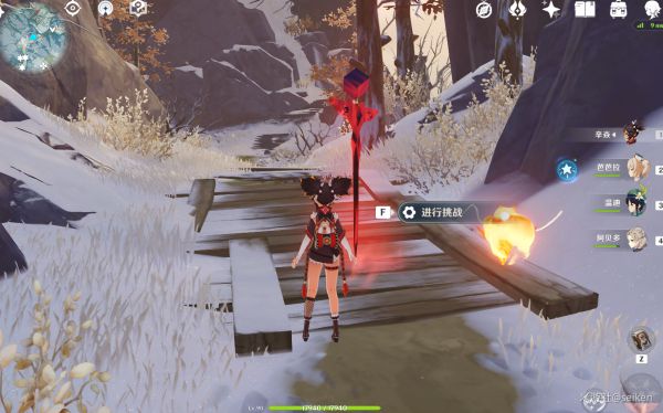 不过这次飞行挑战比较简单,没有任何障碍,直接飞就完事,挑战完成后启动机关杀丘丘人