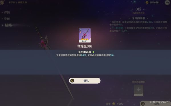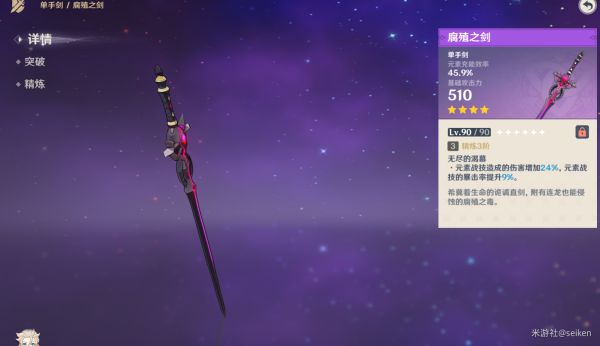 迫不及待的先换腐殖龙随,把腐殖之剑升到精炼3阶,元素战伤提升24%,元素战技暴击提升9%