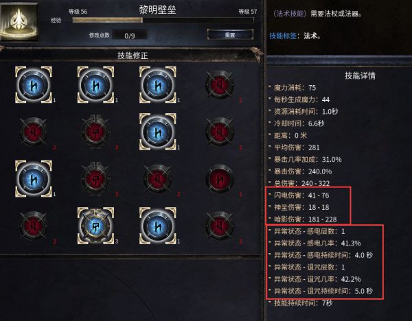 此时由于电和暗影两者伤害都超过了技能原本给出的神圣伤害,所以异常变为了感电加诅咒。